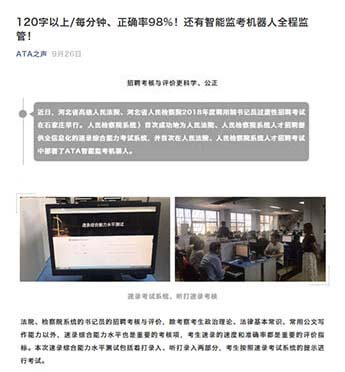 監(jiān)考機(jī)器人已成功服務(wù)了多次大規(guī)模考試,服務(wù)對(duì)象包括“全國(guó)稅務(wù)師職業(yè)資格考試”,“全國(guó)專利代理人資格考試”,“銀行專業(yè)人員職業(yè)資格考試”,“人民檢察院系統(tǒng)人才招聘考試”,以及“ACT(香港考點(diǎn))”等等,廣受好評(píng)。