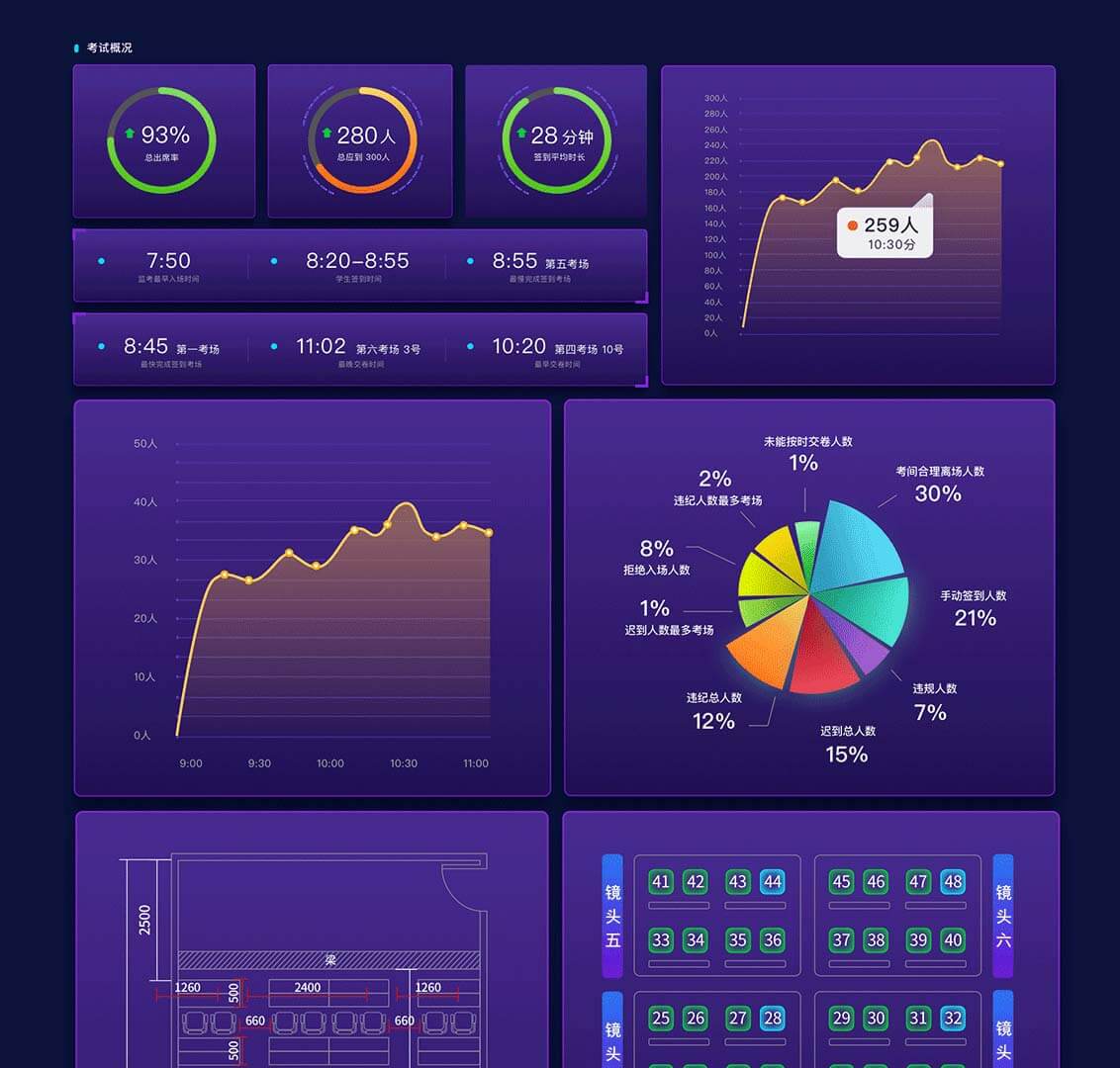 所有標(biāo)記畫面和全過(guò)程同步推流至云端,廣泛適 用于各大考試和無(wú)人教室。解決人工管理的不穩(wěn) 定性,實(shí)現(xiàn)考務(wù)設(shè)備和考場(chǎng)服務(wù)的一體化。